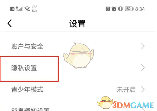 3。单击[隐私设置],