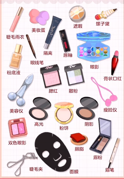 1。我们只是按照图中所示的位置,把所有的美妆产品拖到相应的地方。