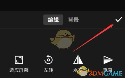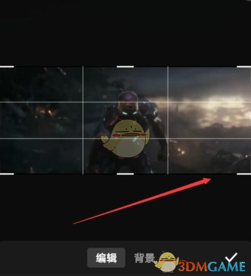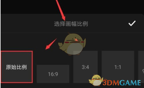 2。我们需要导入要编辑的视频,然后按照下图箭头选择帧比例,点击【打勾】选项。