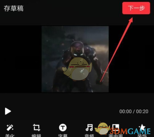 6。最后我们成功修改了视频尺寸,然后点击右上角的【下一步】选项。